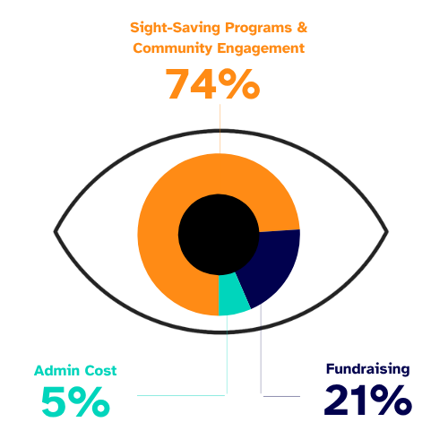 Every donation makes a real impact. We’re proud to say 74% of every dollar goes directly to delivering sight-saving programs. The rest supports essential fundraising and operations to keep our work going.