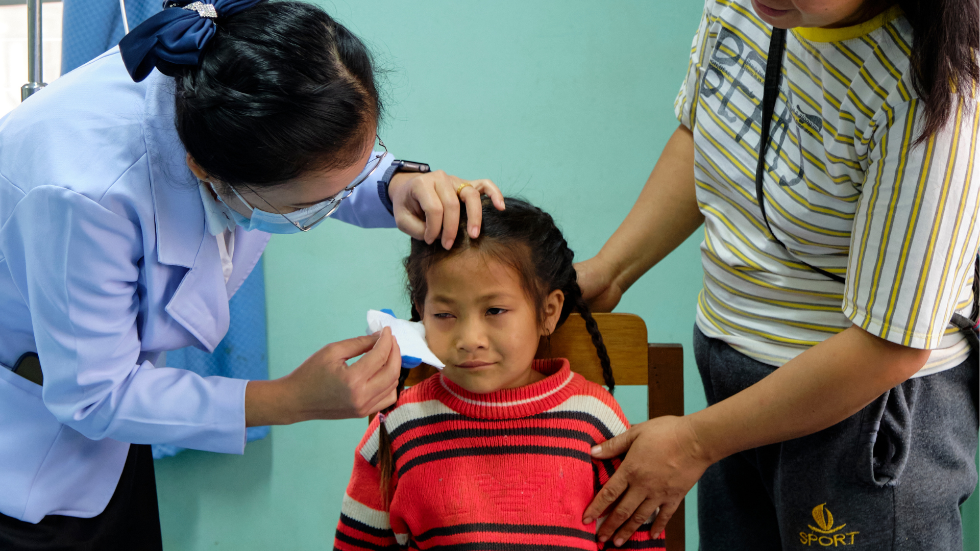 When the patch was lifted, the results were clear—her vision was restored, and her life transformed. Chansouk’s mother, Nam, was overjoyed to watch her daughter, now able to see clearly, put on a pair of plastic glasses and play with a toy stethoscope, pretending to be just like Dr. Senglar.